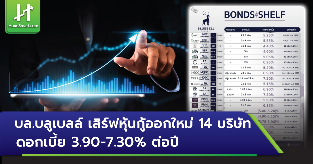 บล.บลูเบลล์ เสิร์ฟหุ้นกู้ออกใหม่ 14 บริษัท ดอกเบี้ย 3.90-7.30% ต่อปี