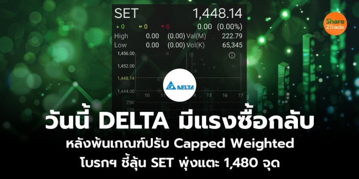 วันนี้ DELTA มีแรงซื้อกลับ หลังพ้นเกณฑ์ปรับ Capped Weighted โบรกฯ ชี้ลุ้น SET พุ่งแตะ 1,480 จุด