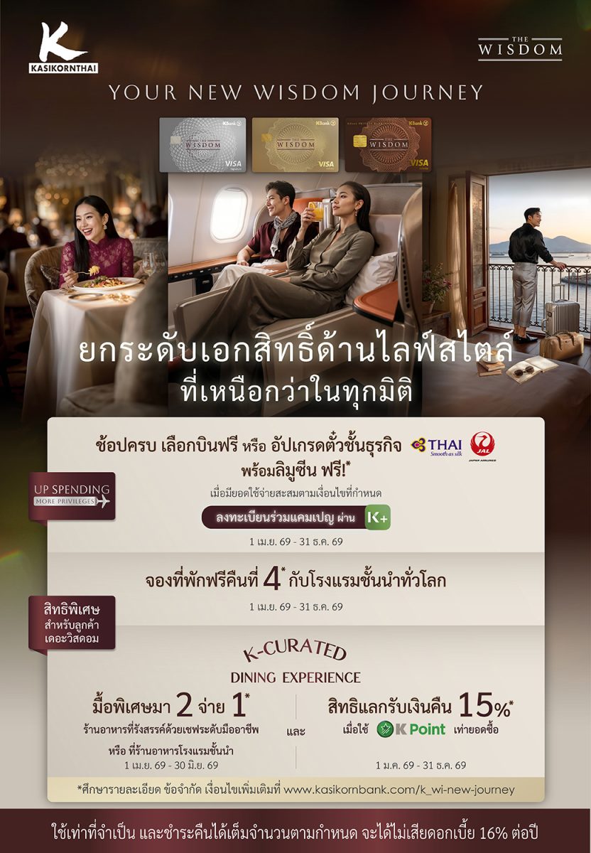 “เดอะวิสดอมกสิกรไทย” ผนึก “วีซ่า” ยกระดับสิทธิพิเศษครั้งใหญ่ มอบประสบการณ์เอ็กซ์คลูซีฟให้ลูกค้าครบทั้งการเดินทาง-ที่พัก-มื้อพิเศษ